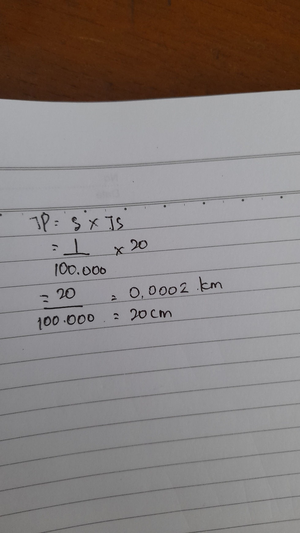 Jika diketahui jarak sebenarnya dari dalung ke abiansemal adalah 20km dengan skala 1:100.000. Tentukan jarak pada peta! (dalam cm)